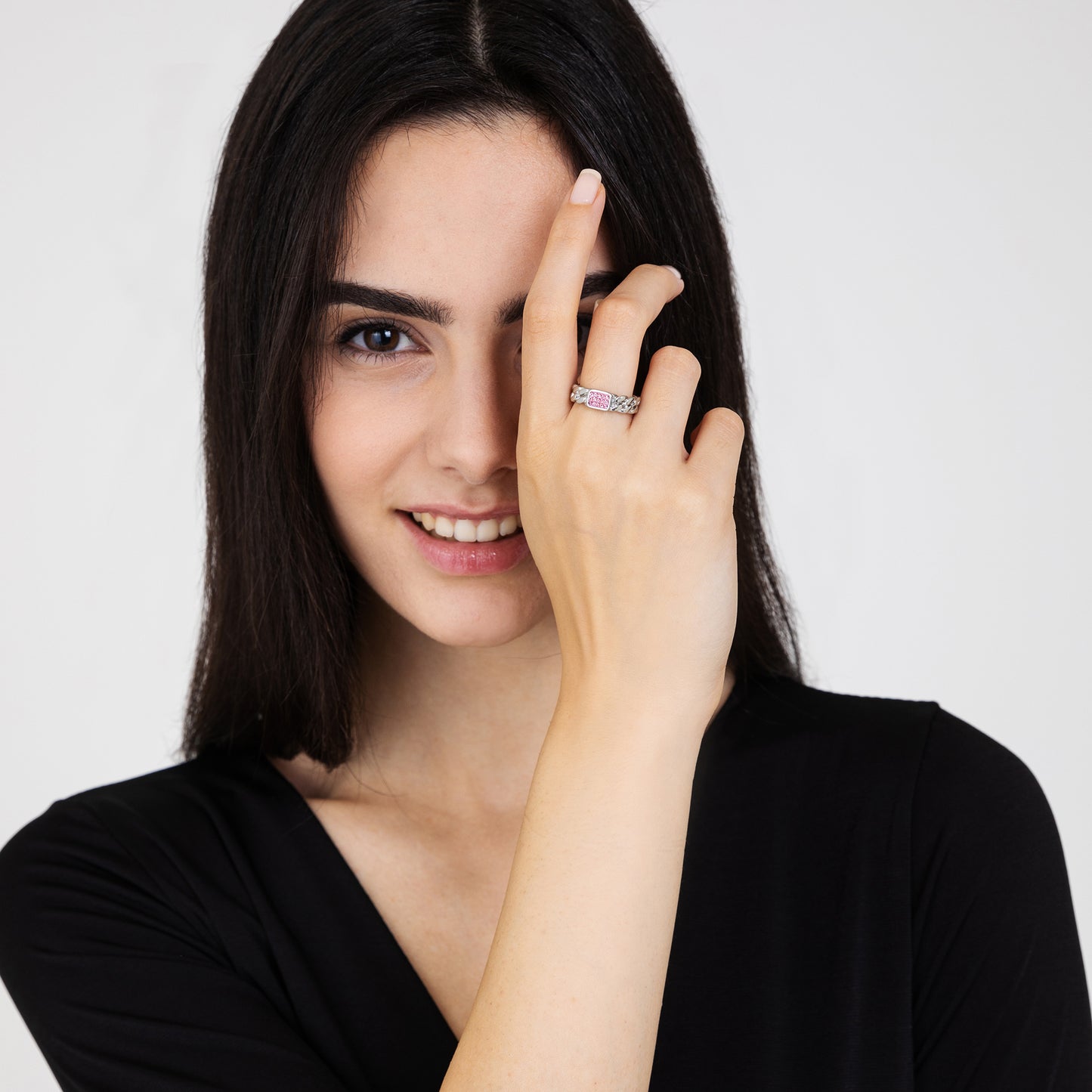 STAHLRING MIT FUCHSIAFARBENEN KRISTALLEN