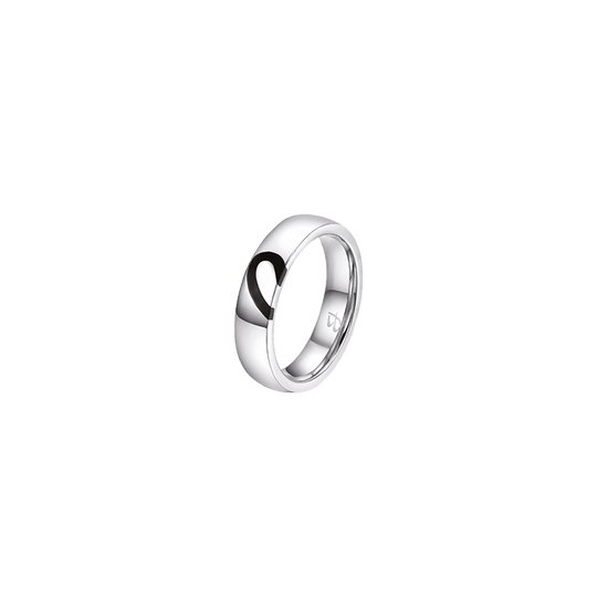 Fedina donna e uomo in acciaio con mezzo cuore con smalto nero. Larghezza: 5 mm