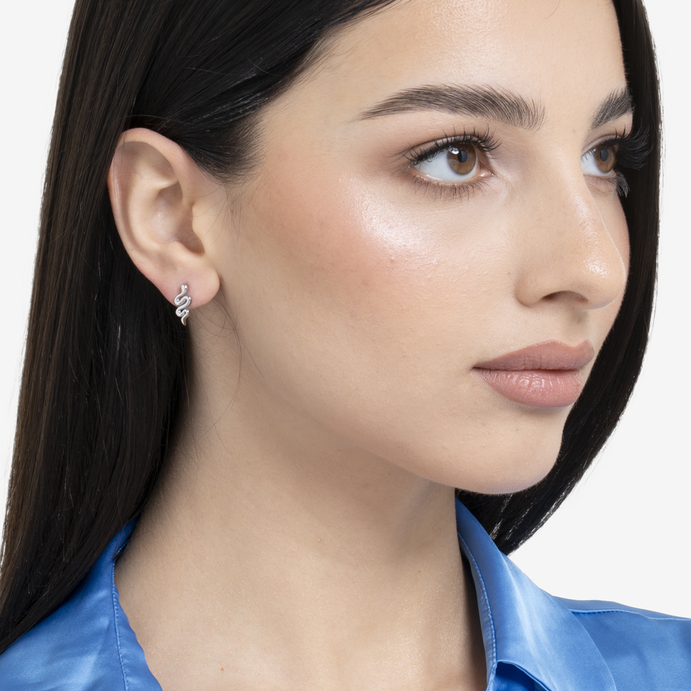 Mono orecchino donna in acciaio con serpente Lunghezza: 6 x 14 mm Scopri il fascino magnetico di questo mono orecchino in acciaio con serpente, un simbolo di trasformazione e forza, perfetto per chi ama i dettagli audaci e raffinati.