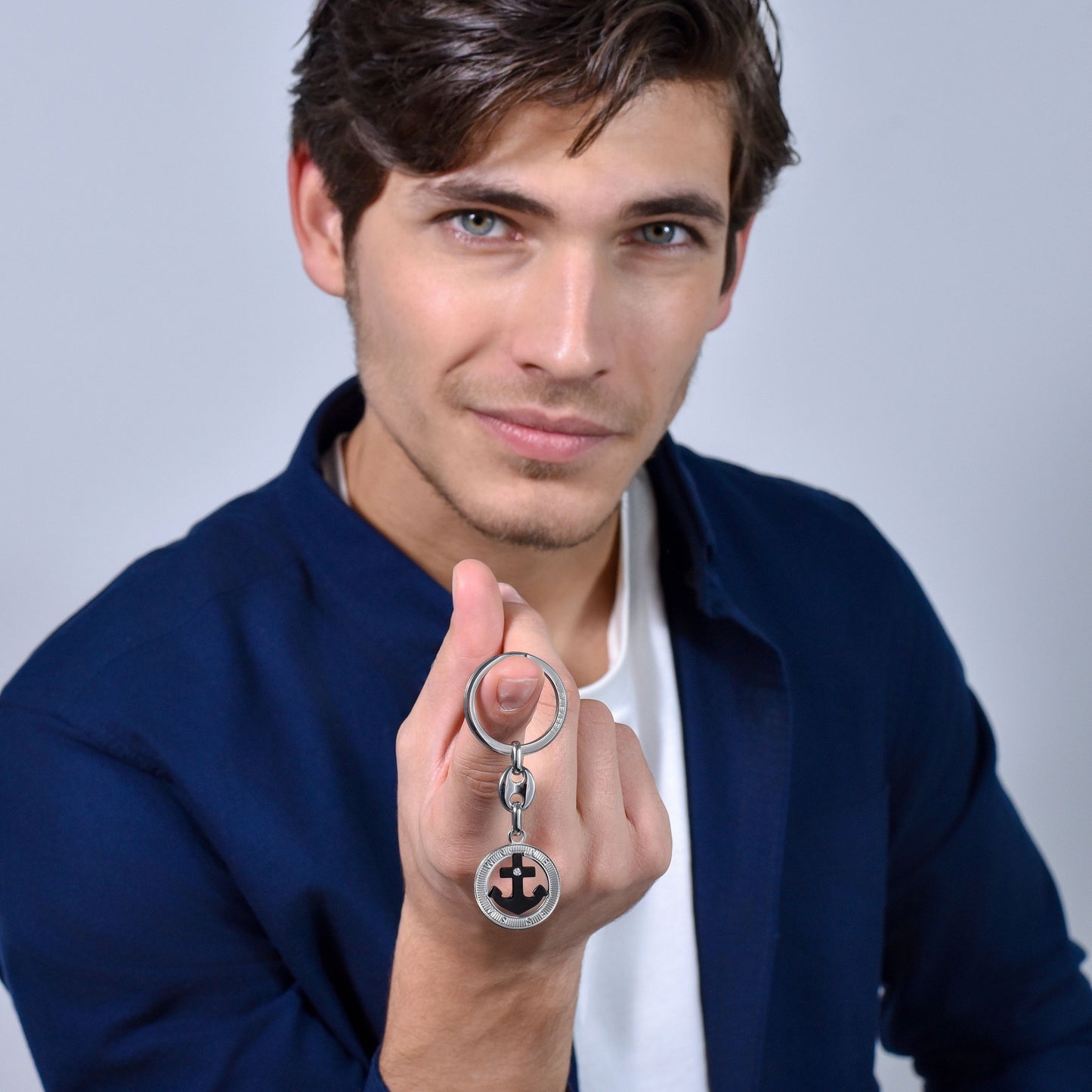 HERREN STAHL SCHLÜSSELANHÄNGER ANKER IP SCHWARZ