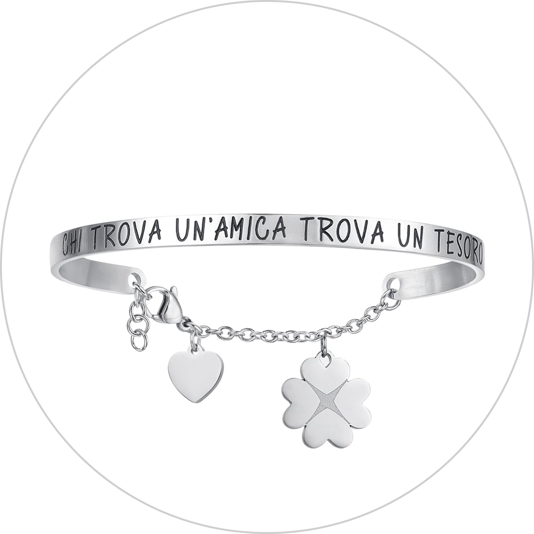 Die Armbänder der Portafortuna-Kollektion kombinieren Charme e Mystik. Diese Armbänder, die mit jedem Outfit harmonieren, sind eine tägliche Erinnerung an innere Stärke und Positivität, die jede Geste mit einer besonderen Bedeutung begleitet. Denken Sie daran, dass Sie die Möglichkeit haben, das Armband mit einer Armbänder mit einer Gravur zu personalisieren.
